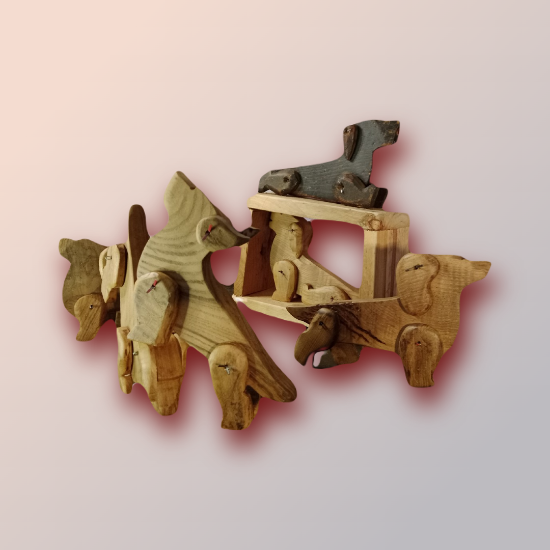 Os Bondos son pezas artesás que homenaxean un xoguete doutro tempo. Cada Bondo é único. Os seus corpos, orellas, fociños e patas diferéncianos entre si e en moitas ocasións inspíranse nos habitantes caninos da Gargalleira.
