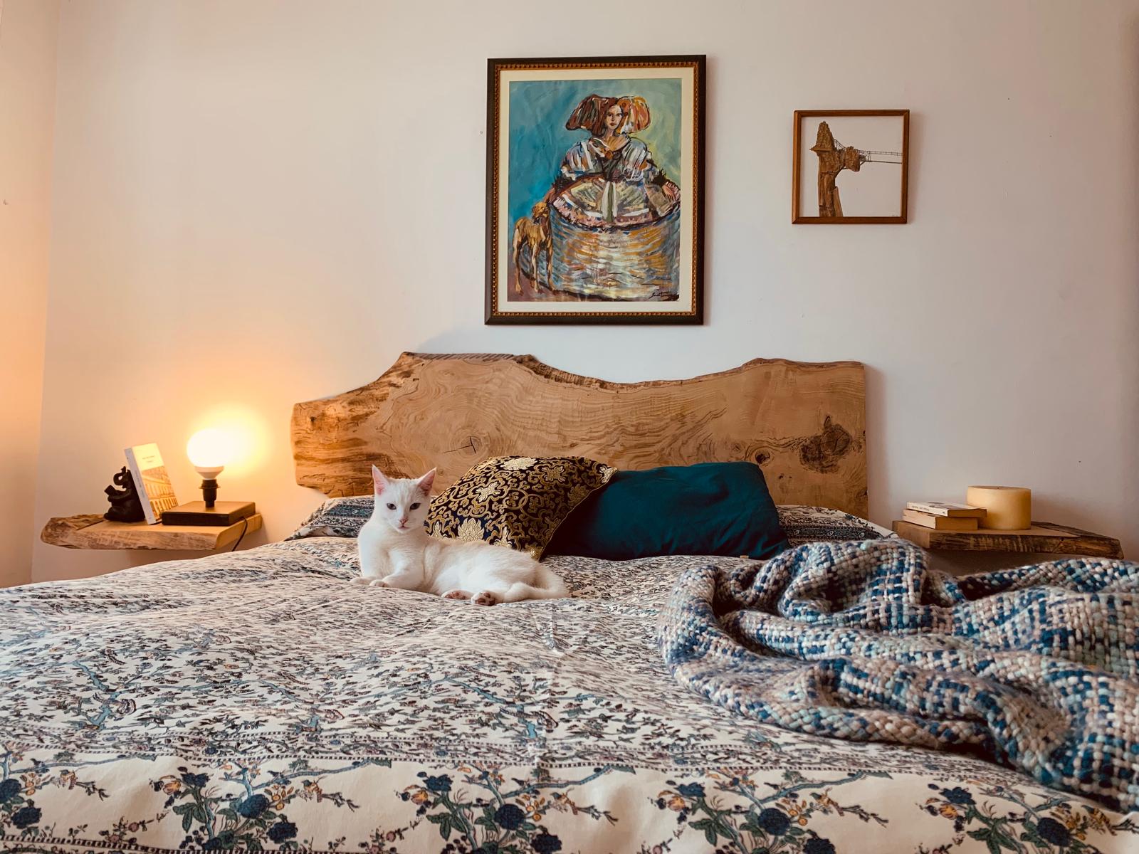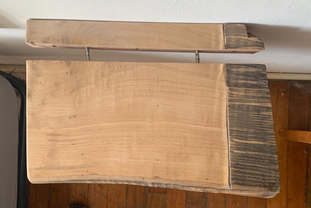 As mesas de noite GOUXA e MERA son o acompañamento ideal para o cabeceiro de cama XABRE, pois proceden do mesmo taboleiro da nosa castiñeira. Nos seus bordes aprécianse as terminacións do taboleiro e os rastros do traballo dos xilófagos.