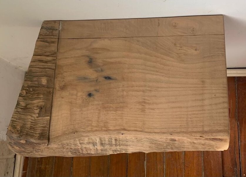 As mesas de noite GOUXA e MERA son o acompañamento ideal para o cabeceiro de cama XABRE, pois proceden do mesmo taboleiro da nosa castiñeira. Nos seus bordes aprécianse as terminacións do taboleiro e os rastros do traballo dos xilófagos.