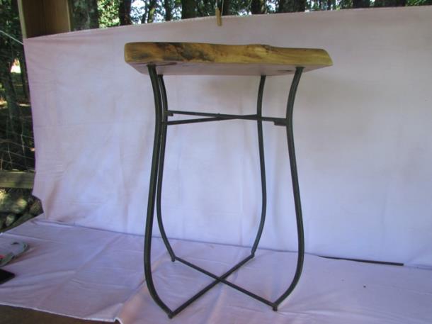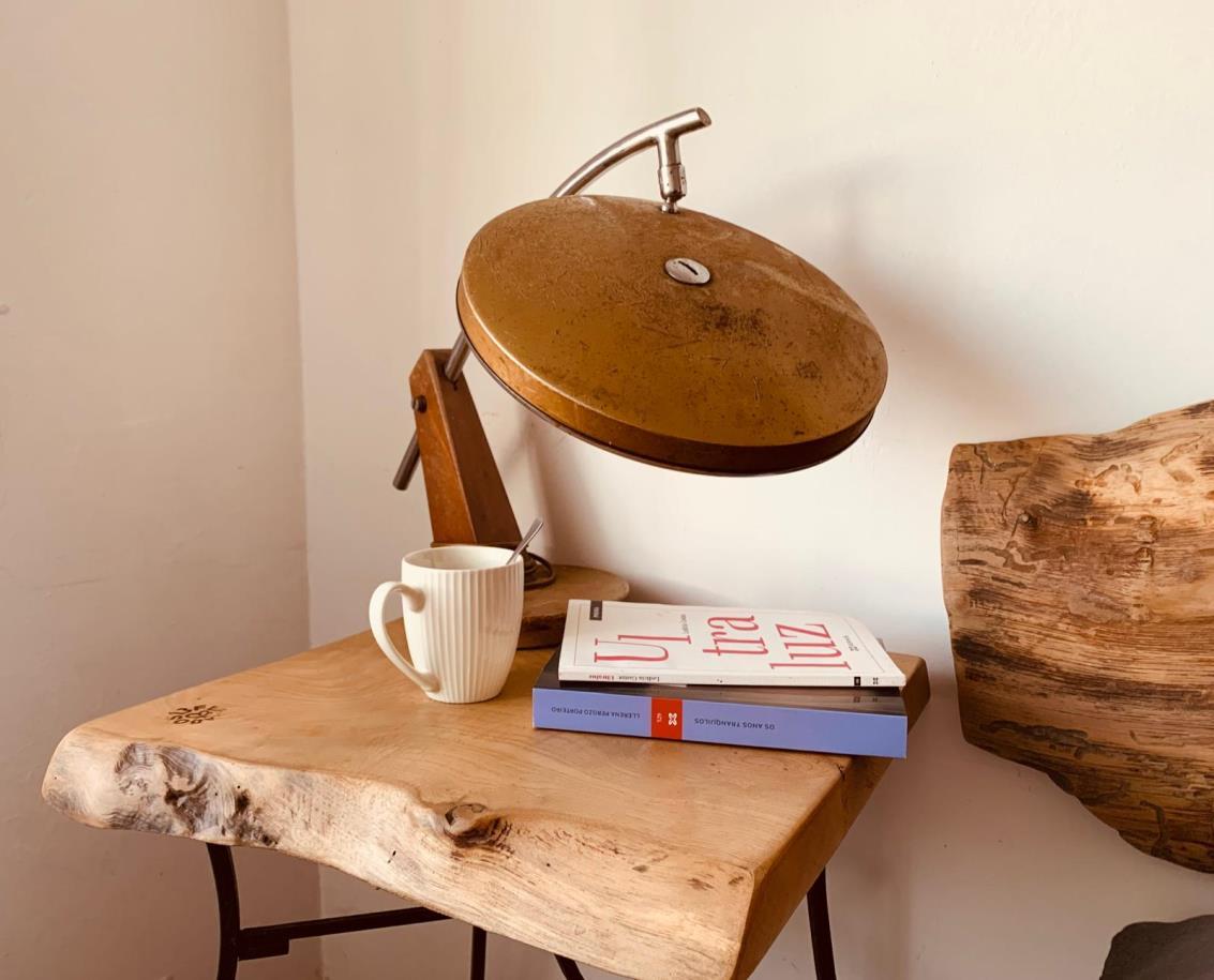 A mesa FERRO componse dunha estrutura de ferro que un día foi o pé dunha mesa redonda auxiliar e mais dunha peza da nosa madeira da castiñeira. A mesa orixinal estaba rota e collendo po no sobrado do avó, así que decidimos rescatala. Invertemos a súa posición, tratamos o ferro para protexelo sen ocultar as pegadas do tempo, fixamos os novos pés e creamos unha tapa rectangular para darlle un aire menos clásico e aumentar a súa superficie útil.